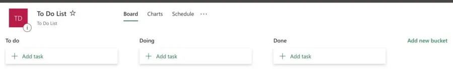 You can have a simple To-Do list and create tasks for a specific project or the whole team. It’s up to you to permit people to access the Planner, and you can add tasks to people (more on that later). For now, you can see above that we have three buckets (To do, Doing, Done).