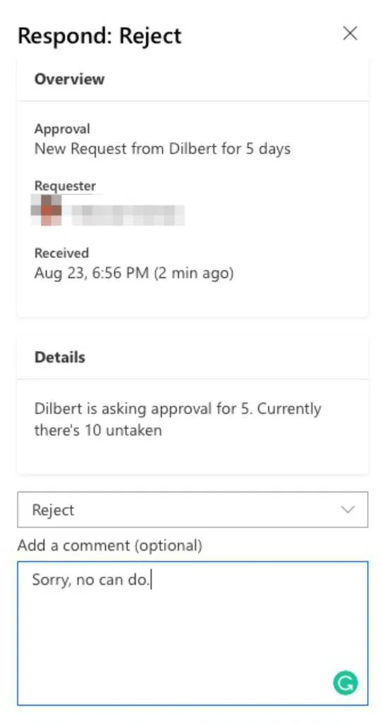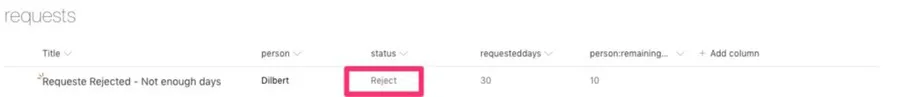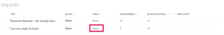Test 2: Ask for enough days and boss rejects the request