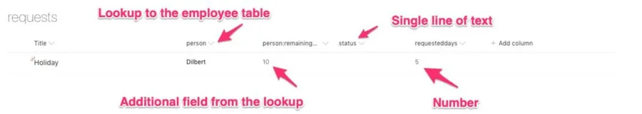 Person Remaining Days - Having the additional field here allows us to fetch the file directly and not have to get the item in the “employee” list