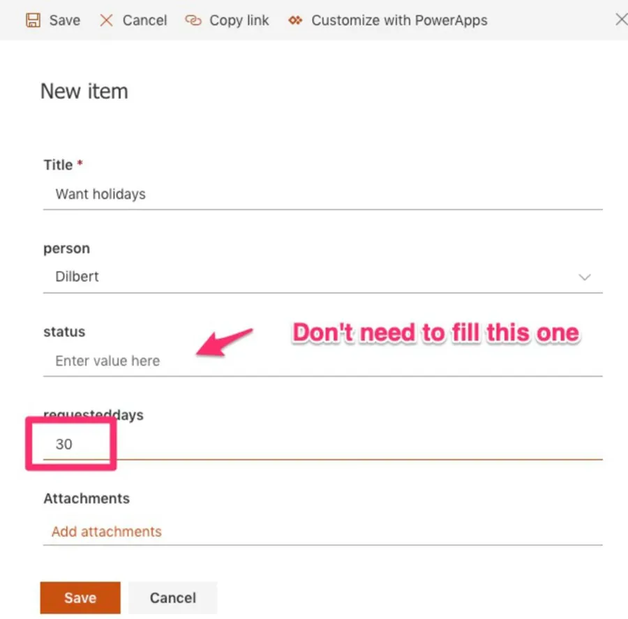 Let’s do some tests to ensure all parts of the approval process are working correctly. To test, insert a new value in the “request” list, and it will trigger the flow automatically.