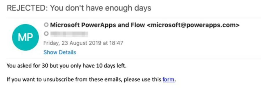 There aren’t enough days. Then it’s rejected, and the requester notified