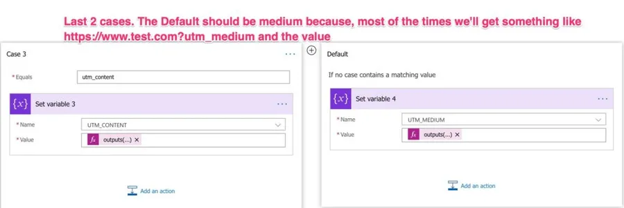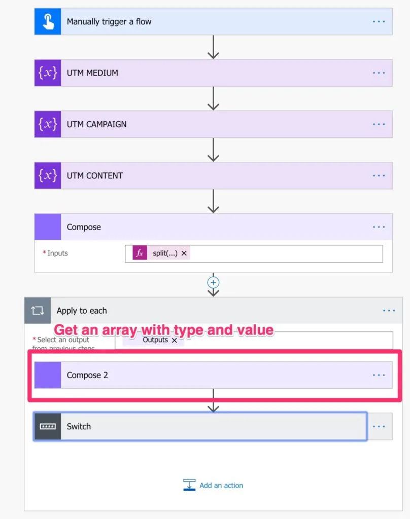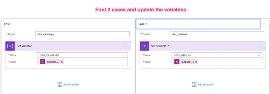 Hello and thank you for the helpful article. For everyone's additional benefit since the powerfx equation is not described when setting the variable values. You can use the following expression to extract the key to use in the switch because the switch will throw error on the array so you have to extract the key from each returned array. Extract the key: ex. utm_campaign first(outputs('Compose_2'))