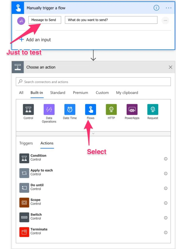 Now let’s call it. For that, we’ll need a new Flow. The same steps apply.