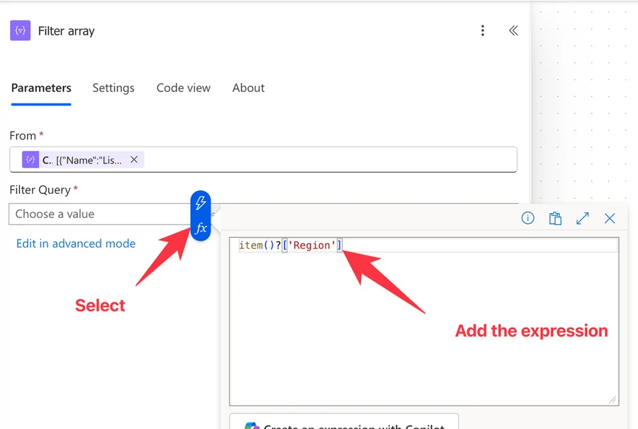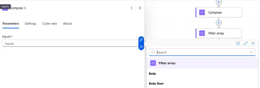 The "Filter Array" action has two main parts: the source array and the filter condition. Let's go through each one.
