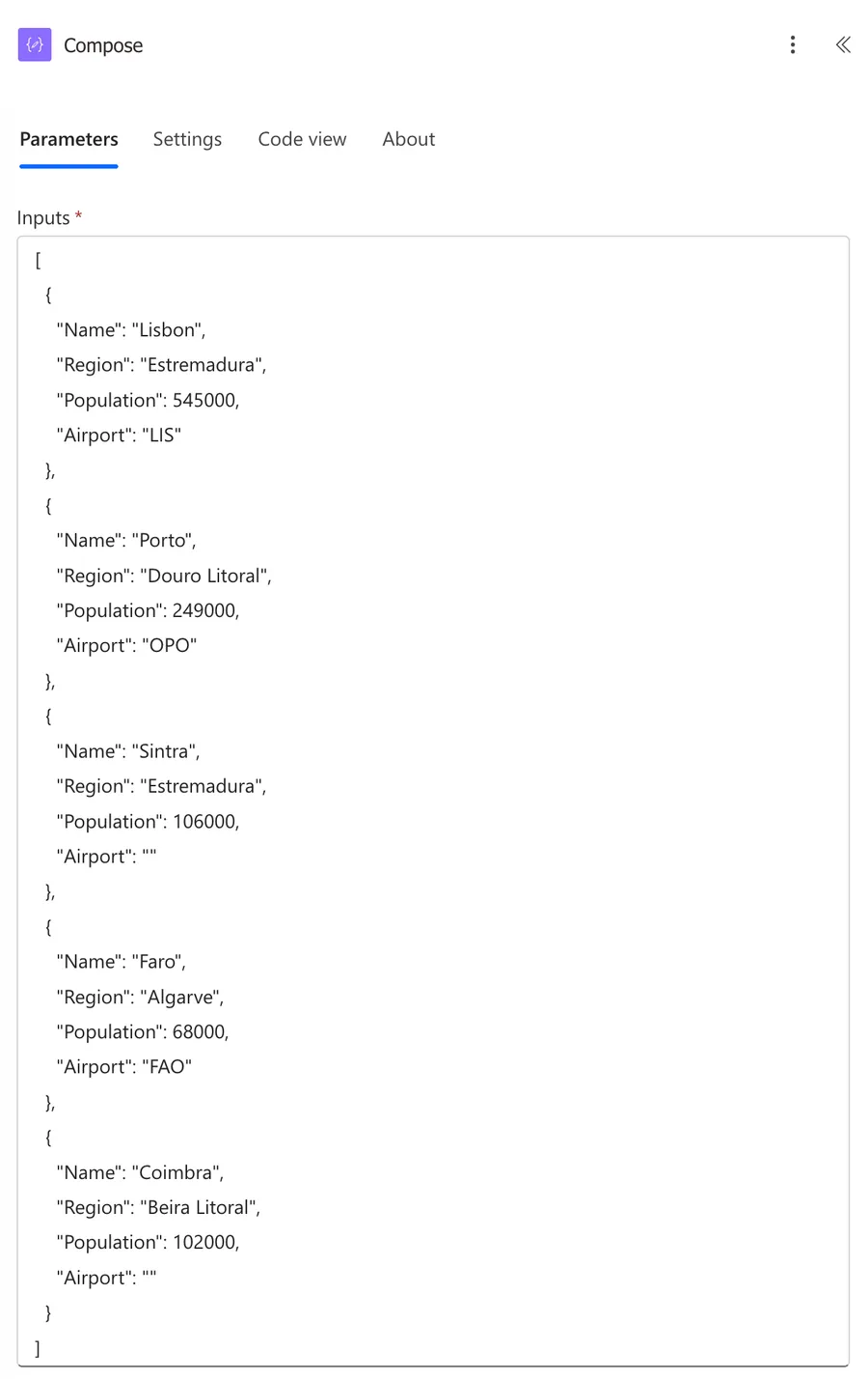 For this article, let's use the following sample array in a "Compose" action so we can see the "Filter Array" in action throughout: