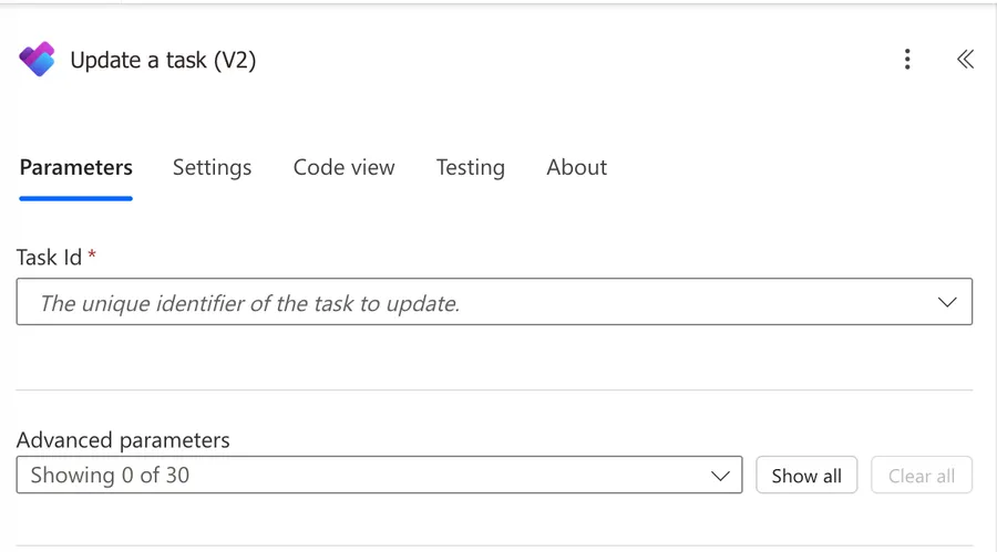This is the only required field. You need to provide the unique identifier of the task you want to update. You can get this from the "Get a task" action, the "List Tasks" action, or from a trigger like the "When a new task is created" trigger.