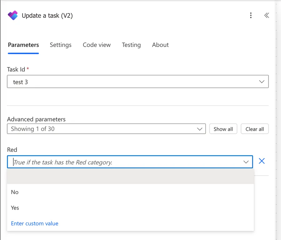 Unlike the "Create a task" action, the "Update a task (V2)" action does not include a Priority field. If you need to update task priority after creation, you'll need to use the "HTTP" action with the Microsoft Graph API directly.