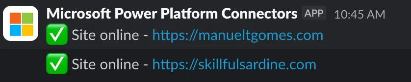 One could think that if all is going well then we would not need to send a notification, but what if Power Automate fails to check? Then the site could be down and you would not get a notification. This way we can check the process is running and doing its job.