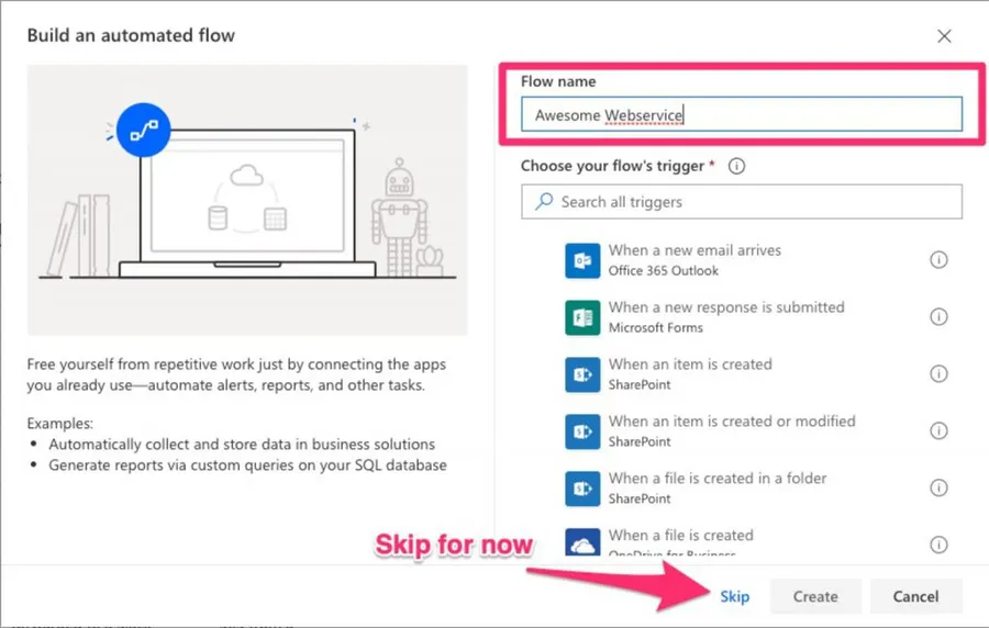 Create a new flow and select “Automated.”