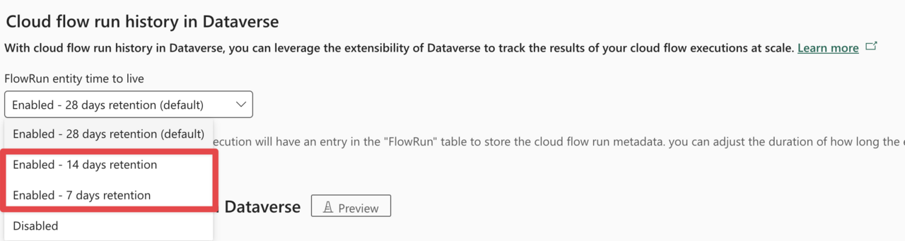 My recommendation is to understand your usage and calculate, roughly, how many runs you will have. It’s a simple number of Flows x runs calculation that can provide you with a baseline to understand if you have room in your Dataverse to save more data or if you need to reduce it. Reducing the value could also be a quick way to reduce costs in case you’re going over your allowance for Dataverse. A simple change from 28 days to 20, for example, could give you the information that you need but save you a lot of space if you have a lot of Flows running constantly, so there’s no magical number that we can define that will work for all cases.