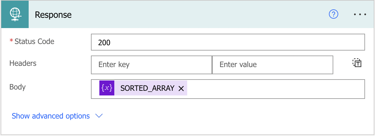 Can you provide how the Response step is configured as I didn’t see where you explained that step. Do I just need to pass the SortedArray variable, or is there some JSON needed in the “Response Body JSON Schema” section?