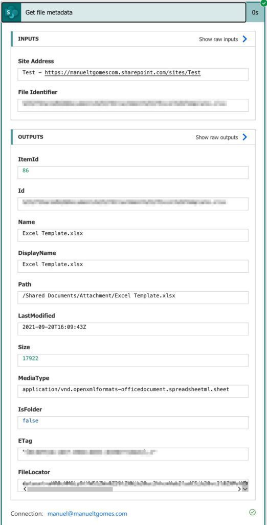 Depending on your needs, having this information can be incredibly useful. For example, if you want to list all files in a folder and get their details, the SharePoint “Get File Metadata” action is the one to use.